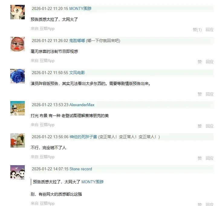 而首款定档预报片上线之后,在豆瓣等处,影迷的口碑响应似乎并不乐不雅。当今,还是出现的影迷差评声息不少。比如说: