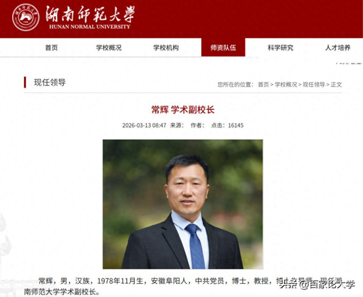 行为湖南师范大学现在独一具有985高校责任配景的副校长,常辉的加入,既是对其个东说念主学术与管明智商的高度招供,也体现了湖南师大“以才引才、以才强校”的刚烈决心。