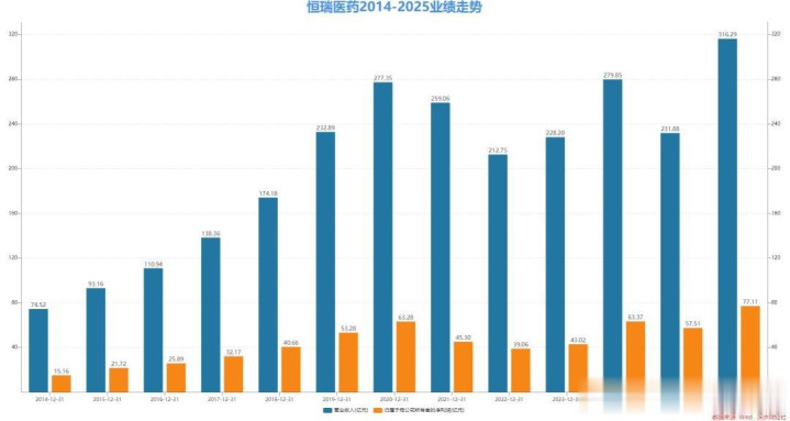 已往5年来,恒瑞遴选“主动求变”,一边消化集采带来的冲击,一边加快鼎新药布局,硬生生扛过了行业极冷,从2023年开动,事迹逐步回升,2025年绝对罢了公司历史最佳水平。
