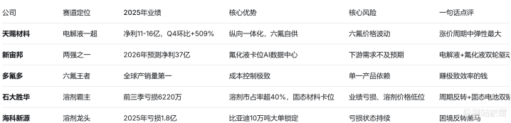 一句话点评:电解液+氟化液双轮驱动,AI算力赛谈的“隐形卖铲东谈主”。