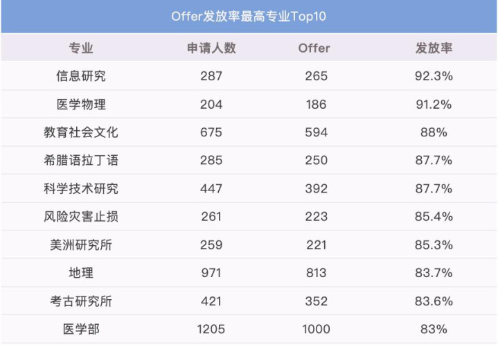 能看出,热点专科的央求难度都不低,排行前10受迎接的专科中,仅罕见学和物理与天体裁的Offer披发率达到了50%以上,其他专科则都和总体的披发率都存在或多或少的差距。因此在央求时,除了要琢磨专科和明天的行状场合,还需要存眷拿到不同专科Offer的得胜率。「思了解英国顶级私校正常都学些什么?私信免费领取英国私校课程开设笃定列表」