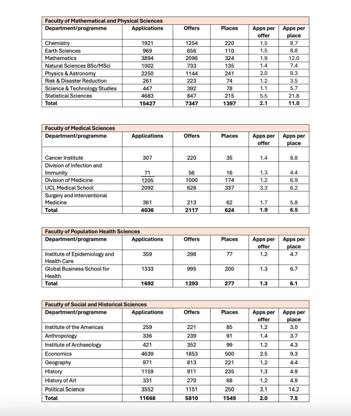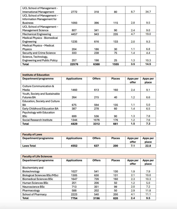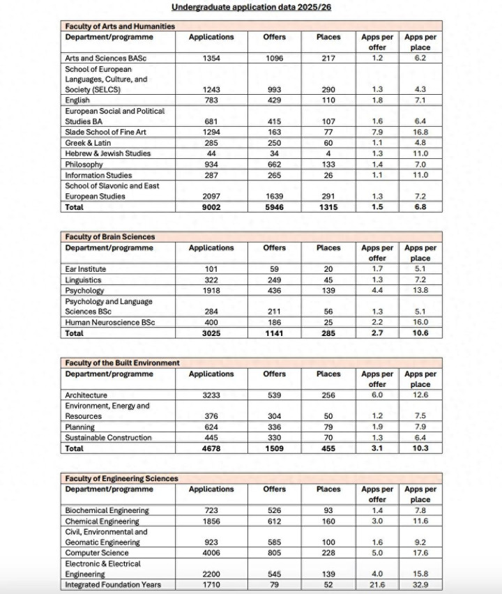 凭证最新的收用数据,UCL在25到26学年一共收到了89239份央求;累计披发38696封Offer;最终收用9138东谈主;举座的Offer披发率为43.4%;本体收用率则为10.2%。